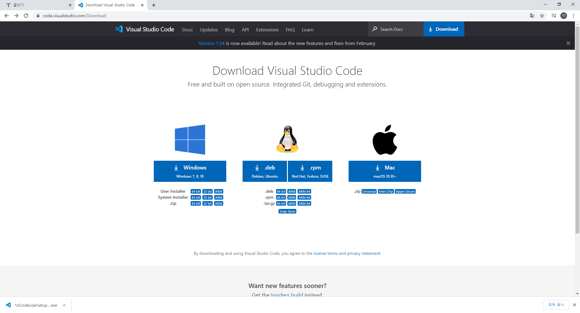 code.visualstudio.com/Download에서 window 버전을 다운로드하면 된다.